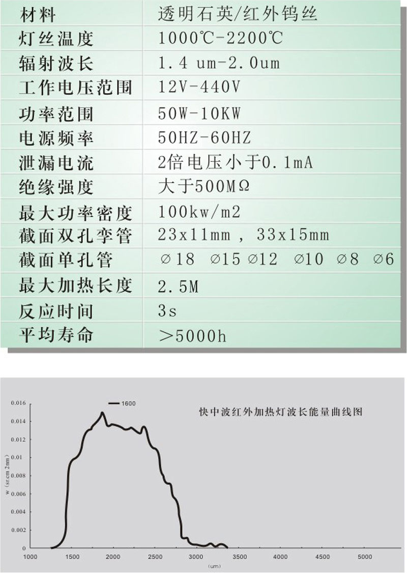 快中波紅外線輻射加熱燈